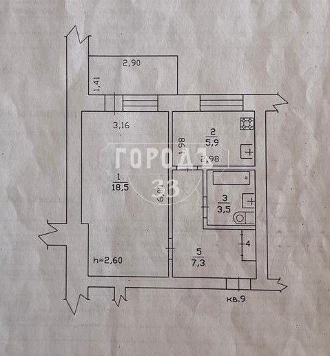 | Площадь (кв.м.) | Общая: 35.7 Жилая: 19 Кухня: 6 35.7 / 19 / 6 |