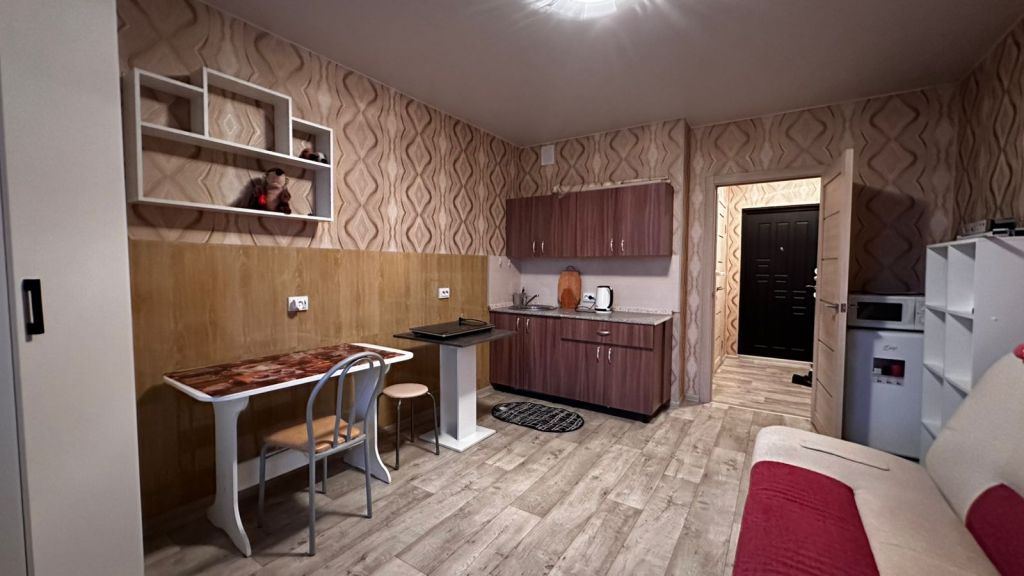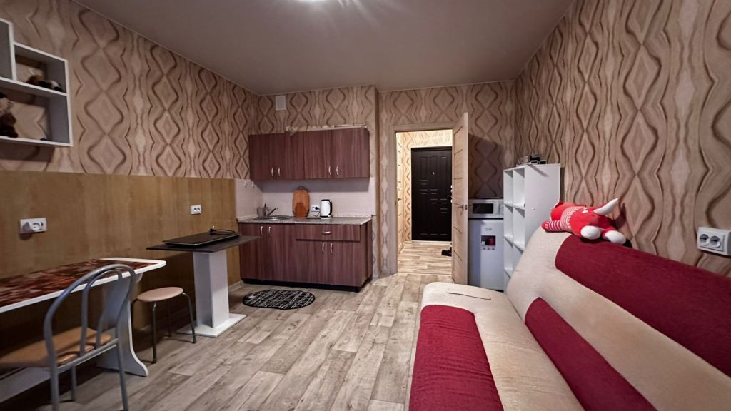 Сдаем квартиру-студию на длительный срок. В наличии мебель и техника. Дом новый, территория огорожена, есть стоянка для автомобилей. |